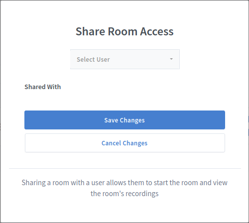 Une fois qu'un salon est partagée, les utilisateurs avec lesquels il est partagée auront accès à celui-ci dans leur liste de salons. Ils pourront voir / démarrer la réunion et voir les enregistrements.